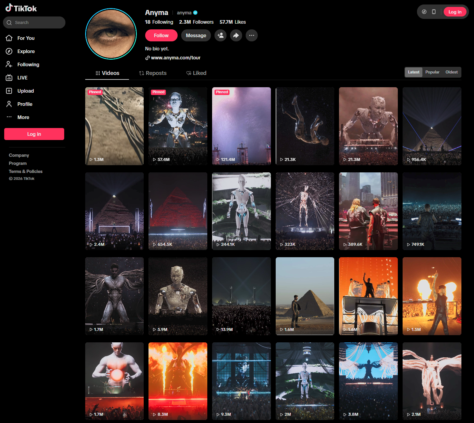 The oldest posts on @anyma Instagram show a clear pattern: 100% of posts feature Alessio's EVA robot or visual aesthetic.